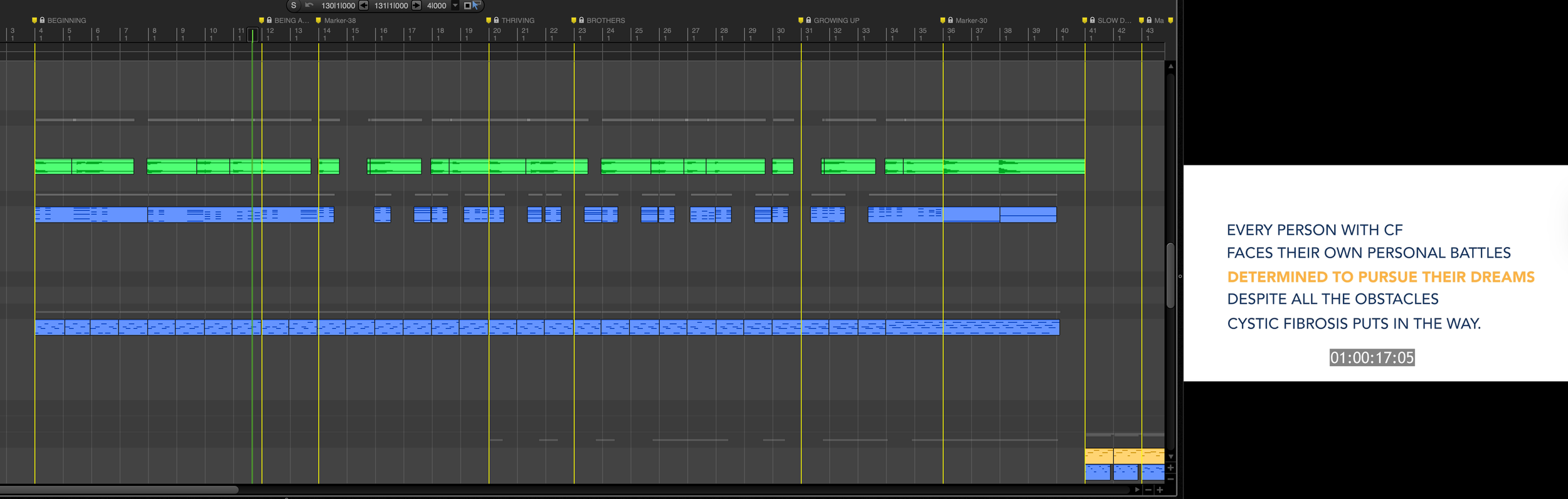 Witnessing the radical improvements to the lives of so many folks living with CF from this unique perch has been incredibly inspiring. Around our 6th or 7th video, the new drug, Trikafta, became available, and with that, the quality of life and life expectancy for people living with CF skyrocketed. There is still work to do, but seeing new hope and new possibilities is just incredible. The fact that the subject of this year’s film is pushing 40 and having children would’ve been a pipe dream 10 years ago.